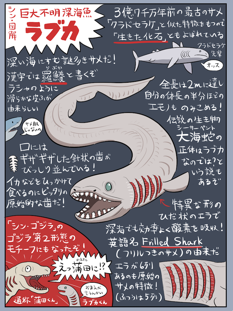 シン ゴジラのモデル深海生物 ラブカ の図解が面白すぎる 蒲田くんがうるさい 笑 食べられるの Togetter